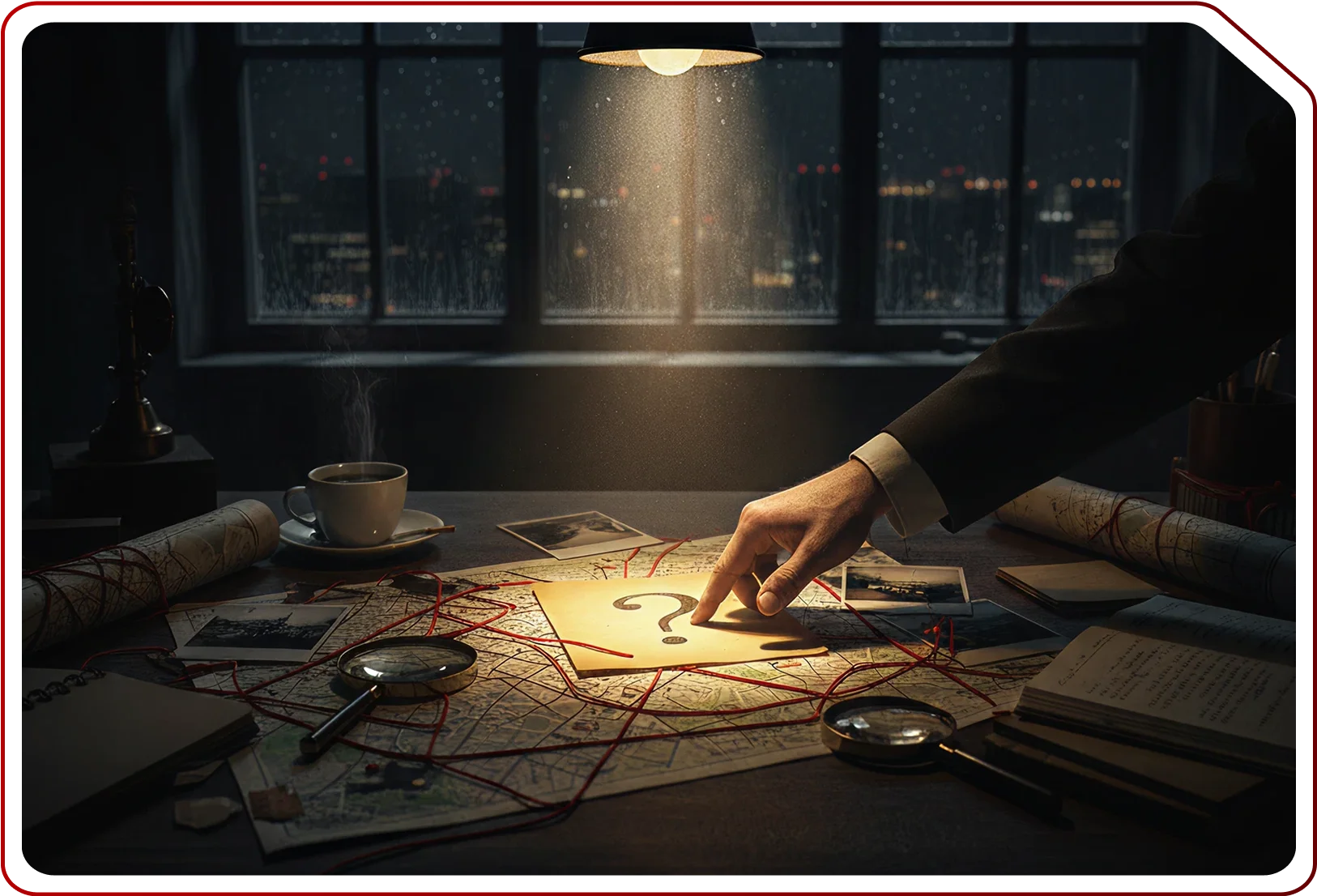 It all began when our founder, Palak Agarwal, realized that while the world was full of crime novels, binge-worthy thrillers, and true-crime podcasts, something was missing. Readers and viewers were always spectators—never the detectives themselves. What if you could step into the story? What if you could hold the evidence, follow the trail, and crack the case yourself?